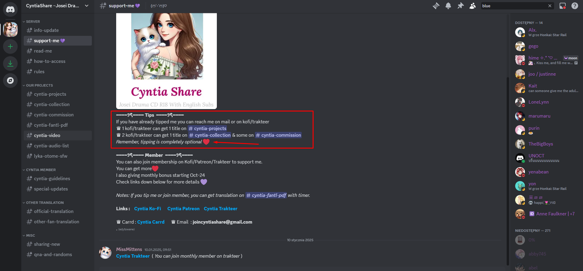 You can buy membership on Cyntia’s Ko-Fi and Patreon. Stuff on her Discord server is for me confusing (maybe because I’m a boomer), but while reading about it, I found something for me, really funny.