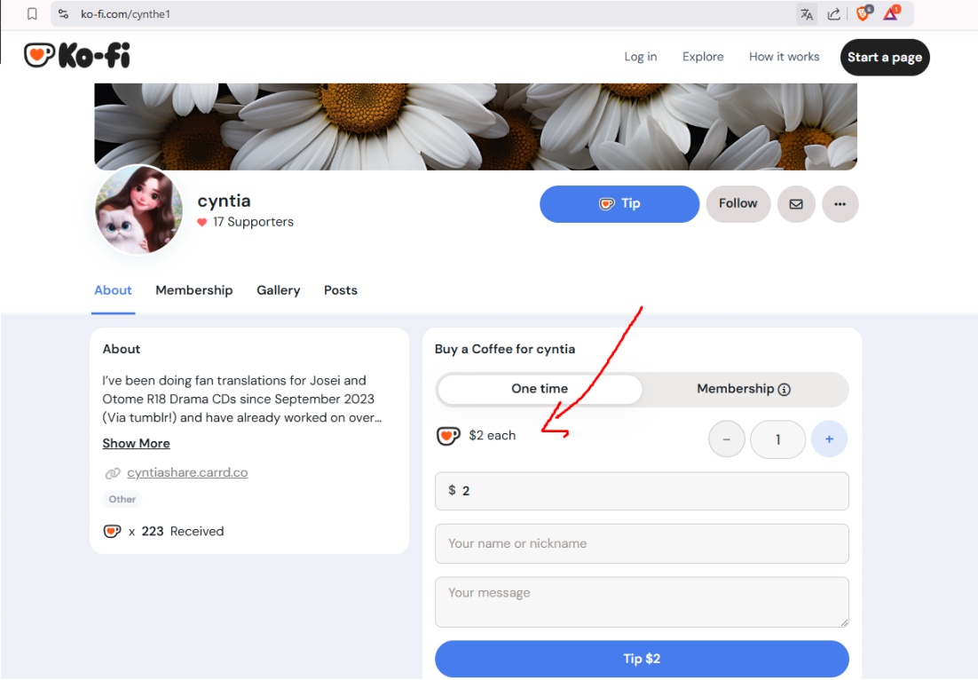 1 Ko-Fi is worth 2 USD (you can see it at the top of the post ^^)