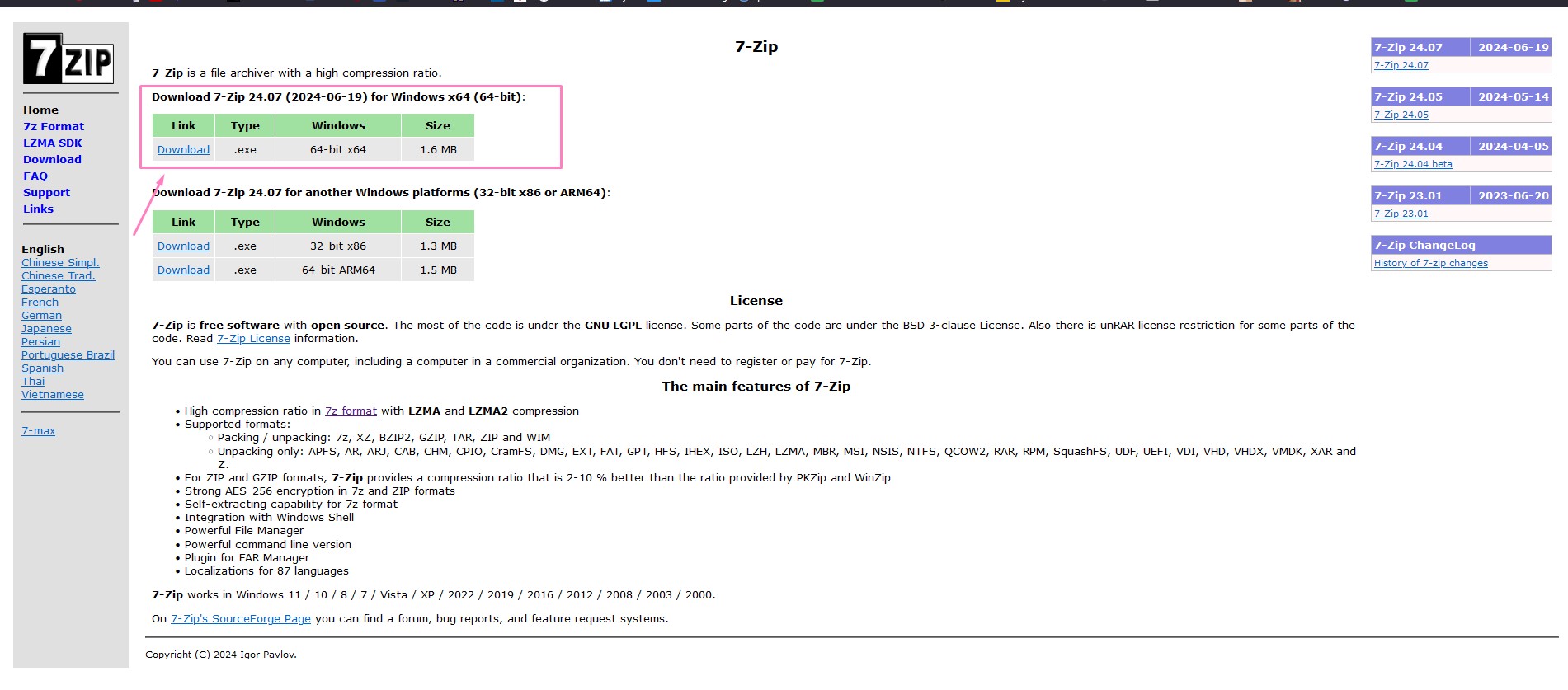 On the image below is 7-ZIP version you should download if running Windows (or rather where you should click because version will probably be newer in the time you read this).